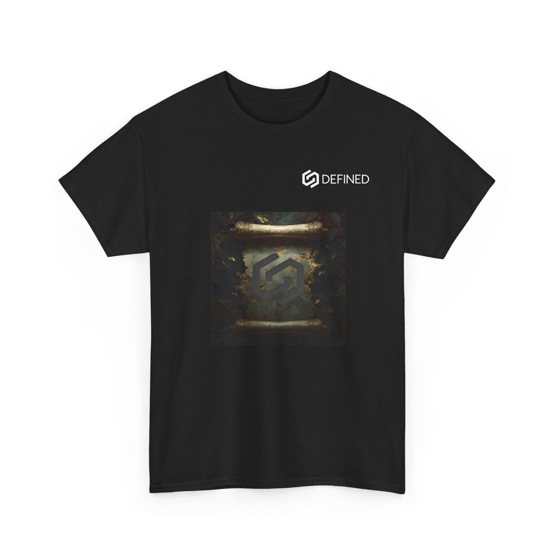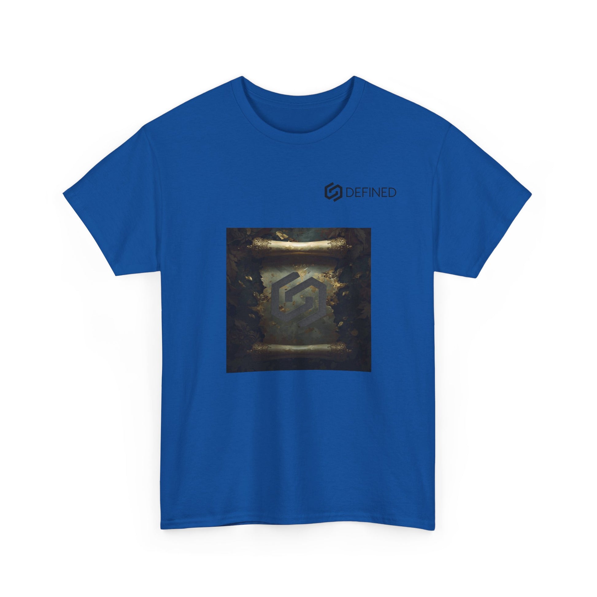 Step into timeless style with this Scroll Emblem Tee, inspired by ancient artistry and modern design. The shirt showcases a detailed scroll background accented with ornate gold flourishes and autumn tones — symbolizing wisdom, heritage, and strength. Centered on the design is a bold geometric emblem, blending tradition with a modern edge.